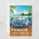 Ces invitations tropicales à la fête de la piscine de remise de diplômes sont assurées de faire rouler la fête d'été ! Modèles, y compris un modèle photo à l'arrière. Palmiers tropicaux et îlot de plage au sommet, éclaboussures de piscine réalistes et haut-parleurs de piscine, boules de plage, canards jaunes avec une excellente typographie.