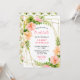 This fun and whimsical birthday party invitation features watercolor pink and orange hibiscus flowers, monstera leaves and foliage on a gold geometric frame. The text combines handwritten script and serif fonts for a stylish and modern look. This is perfect for a spring or summer rustic birthday party.