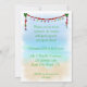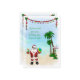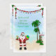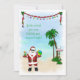 Une invitation lunatique de fête de Noël avec un talent tropical. Caractéristiques de conception une scène de plage avec des palmiers et Père Noël dans des lunettes de soleil, tenant un cocktail et un ballon de plage. La frontière supérieure sur l'avant et le dos a un butin de ruban avec les ornements accrochants de Noël. Graphics© http://www.delightful-doodles.com/