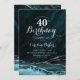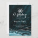 Turquoise et argent agate 40e anniversaire invitation de fête. Elégant design moderne avec turquoise turquoise bleu aquarelle agate marbre géode arrière - plan, faux parties scintillant argent et typographie script. Carte invitation branchée parfaite pour une célébration anniversaire féminine élégante. Invitations Zazzle imprimées ou téléchargement instantané modèle imprimable numérique.