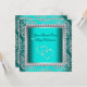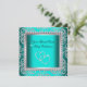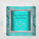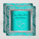 Invitation Turquoise Blue Damask Silver Diamonds Heart Party