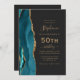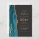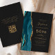 Invitation Turquoise Blue Gold Agate QR Code 50e anniversaire