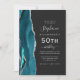 Le bord gauche de cette élégante invitation moderne à la fête du 50e anniversaire comporte une bordure turquoise en aquarelle bleue ornée d'une fausse parties scintillant argentée. Le texte personnalisable combine écriture gris argenté, copperplate et polices italiques sur un arrière - plan noir ardoise. Ajoutez les instructions RSVP au verso de la carte, ainsi qu'un code QR que vous pouvez analyser pour répondre en ligne.