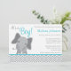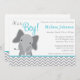 Une invitation orientée moderne de baby shower d'éléphant bleu gris et turquoise. Perfectionnez pour un baby shower de petit garçon.