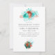 Invitations de roses turquoise et corallienne et de fossés tropicaux pour des fêtes d'été conçues pour être rapidement et facilement customisées à vos détails de l'événement.