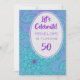 Il s'agit d'un joli et amusant design d'anniversaire pour annoncer et célébrer un évènement majeur de la vie, à savoir le 50e anniversaire. Le champ de texte est un ovale blanc cassé avec une toile de fond qui est un bleu turquoise turquoise et prune violet motif floral fractal pièce d'art abstraite que j'ai créé. Il y a deux polices différentes qui vont bien ensemble et c'est un design parfait pour l'artiste avec un goût éclectique.