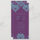 Cette faire-part de mariage chic et classe présente un motif damassé violet élégant contre un arrière - plan bleu turquoise. Un texte entièrement personnalisable vous permet de customiser pour n'importe quelle occasion, des mariages aux douches nuptiales et aux wedding showers ! Zone d'information RSVP sur invitation signifie qu'il n'y a pas besoin de cartes RSVP supplémentaires!