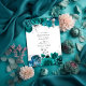 Turquoise - faire-part de mariage floral turquoise et argenté. Idéal pour un thème ou un mariage de jardin. Le code QR au verso dirige vers votre site mariage où les gens peuvent en savoir plus et rsvp.