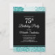 Fleur turquoise et blanche personnalisée sur invitation à la fête du 75e anniversaire noir pour les femmes. Contactez-nous pour obtenir de l'aide sur la personnalisation.