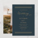 Un simple arrière - plan turquoise foncé minimaliste avec trois lignes simples sur le dessus et le bas réussit toujours à donner une toile de fond dramatique à ce design d'occasion "Mariage" moderne. Le texte et les lignes sont en or ancien sablonneux. Le dos présente votre photo comme l'arrière - plan. Le texte du script ne peut être modifié que par le concepteur. Ajoutez simplement vos noms, les détails du mariage et la photo à compléter. Conception composite par Holiday Hearts Designs (droits réservés).