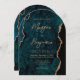 Invitation Turquoise moderne Agate Bleu Script Arch Mariage