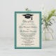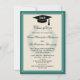 Arrière - plan bleu-vert turquoise turquoise avec capuchon de graduation en mortier, avec trois initiales monogrammées. Invitation de troisième cycle pour les diplômés de l'enseignement supérieur masculin ou féminin, pour l'école de commerce, l'école supérieure, la spécialité majeure, l'école secondaire ou tout niveau. Cette invitation à la cérémonie de remise de diplômes ou de remise de diplômes de couleurs de l'école, à prix abordable, est parfaite pour inviter des proches à une journée portes ouvertes, une réception, une soirée décontractée de remise de diplômes. Le design classique comprend l'emblème traditionnel de la couronne de laurier, le monogramme personnalisé, l'écriture de scripts élégants et le vieux monogramme de style anglais. Très facile à personnaliser avec les informations de votre élève. Invitation officiel et classique de style classique pour hommes ou femmes, filles ou garçons de tout âge.