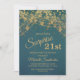 Elégante invitation de fête du 21e anniversaire pour les femmes avec de magnifiques lampes à cordes d'or et bokeh pétillant sur un arrière - plan turquoise audacieux. Le texte, la police et le libellé sont entièrement personnalisables à l'aide de l'outil de conception de Zazzle. Contactez-nous pour obtenir de l'aide sur la personnalisation ou la mise en correspondance de produits.
