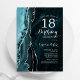Turquoise et argent agate 18e anniversaire invitation de fête. Elégant design moderne avec aquarelle turquoise agate marbre arrière - plan, faux parties scintillant argent et typographie script. Carte invitation branchée parfaite pour une célébration anniversaire féminine élégante. Invitations Zazzle imprimées ou téléchargement instantané modèle imprimable numérique.
