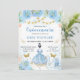 Une invitation de quinceañera de couleur pastel bleu et or présentant une belle ballerine aux cheveux noirs dans un tutu bleu doux, entourée de fleurs aquarelles, de papillons, de chaussures de ballet et d'un motif de cygne gracieux. Les accents de guirlandes lumineuses et la typographie élégante à polices mixtes mettent en valeur les détails de la célébration, tandis que les touches dorées délicates ajoutent une lueur magique et féminine. La palette pastel douce, les illustrations fantaisistes et la silhouette gracieuse de ballerine créent une invitation enchanteresse, jeune et élégante parfaite pour une célébration de Quinceañera sur le thème du ballet ou de princesse.