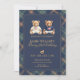 Featuring two watercolor teddy bears, rich navy plaid accents, and elegant gold-style typography, this design creates a refined preppy look ideal for a timeless birthday celebration.