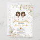 Twin Girl White Flower 1st Holy Communion Gold Parties scintillant Invitation Primera Comunión