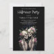 Two Romantic Gothic Human Skeletons Embracing Surrounded By Lush Floral Arrangements Halloween Party Invitation Cards.