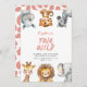 Cute and fun kid's safari animals theme 2nd birthday party invitation featuring illustration of safari animals of giraffe, snow leopard, rhino, lion, elephant, and zebra. The text says "XX is TWO wild." Perfect for a boy's birthday party.
