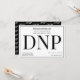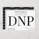 Une invitation à la fête de remise de diplômes DNP en noir et blanc. Cette invitation a également un motif du mot DNP au dos. Typographie noir blanc DNP Graduation Party Invitation Conception de jour férié | ©Melissa Patton - Designer
