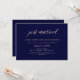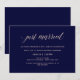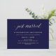 Ces invitations de fête après-mariage élégantes présentent un fond bleu marine et une calligraphie rose blush élégante pour un look moderne minimaliste.