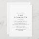 Cette première invitation à la communion de typographie chic est parfaite pour un événement religieux moderne. Le design simple est composé d'une typographie minimaliste classique en noir et blanc, dans un style boho rustique. Personnalisable dans n'importe quelle couleur. Gardez le design minimal et élégant, en l'état, ou personnalisez-le en ajoutant vos propres graphiques et artwork.