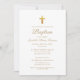 Invitation Typographie de script Gold Cross Chic Élégant Bapt