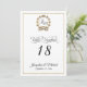 "Typographie de script Monogramme Gold Numéros de table de mariage Réception Numéro de table Cartes." Couronne vintage feuille Laurel avec mise en page de texte typographique en parties scintillant or avec un arrière - plan blanc. Art par Audrey Jeanne Roberts, artiste et designer de renommée internationale, copyright.