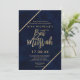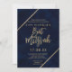 Bandes dorées et typographie bloc de couleur sur aquarelle bleu marine personnalisable et fausses bandes géométriques dorées chic bat mitzvah, parfait pour une fête élégante et luxueuse.