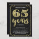 Cette invitation de fête d'anniversaire de mariage de 65 ans élégante et chic comporte une typographie vintage, des fioritures élégantes, une calligraphie au pinceau, un faux papier d'aluminium doré et un fond noir chic.