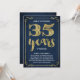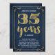 Cette invitation de fête d'anniversaire de mariage élégante et chic présente une typographie vintage, des fioritures élégantes, une calligraphie au pinceau, un faux papier métallisé doré et un fond bleu marine chic.