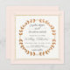 Cette couronne de feuilles de laurier dessinée à la main a été remplie d'un design d'art en cuivre et mise en valeur avec de l'or rose pour une suite d'invitation de mariage très moderne et romantique et élégante. Vous pouvez changer la couleur de la bordure extérieure et le côté arrière de n'importe quelle couleur que vous concevez, présentée ici dans un rose pâle doux. Copyright artistique Audrey Jeanne Roberts.