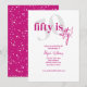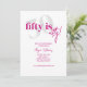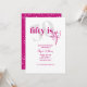 La typographie en gras avec calligraphie 50 est des invitations de fête d'anniversaire astucieuses en rose et blanc. Le dos présente un fond tout rose avec des taches/bulles blanches pour imiter les bulles dans le vin et le champagne pour célébrer comment nous vieillissons comme un bon vin. Tout le texte est entièrement personnalisable.