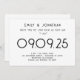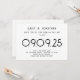 Typographie simple moderne Mariage noir et blanc. Elégance moderne avec ce texte entièrement personnalisable et élégant uniquement design. Personnalisez facilement les mots et, si vous avez un site Web mariage, générez automatiquement un code QR pour lui au verso en remplaçant l'exemple d'URL à celui de votre site Web mariage. Vous pouvez supprimer l'exemple de code QR si cela n'est pas nécessaire via l'option Modifier plus, où vous pouvez également modifier des couleurs et des styles de texte et des couleurs arrière - plans de chaque côté si vous le souhaitez.