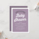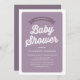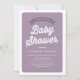 Invitation de baby shower rétro personnalisable. Cette invitation au baby shower violet présente une typographie vintage et une typographie simple. Personnalisez en ajoutant les détails de votre événement. Cette invitation de baby shower vintage est disponible en d'autres couleurs.
