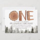 Unique rustique -one-, pins 1er anniversaire invitation.