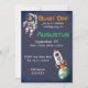 Cette invitation personnalisée présente un thème spatial. Une image d'un astronaute est photographiée en haut à gauche. Un exemple de photo est placé dans le casque de l'astronaute que vous pouvez remplacer par votre propre photo ou image personnalisée. La planète Terre est vue de loin avec un vaisseau-fusée qui s'en éloigne. L'arrière - plan est d'un bleu foncé avec des étoiles faibles et une bordure de galaxie motif.