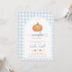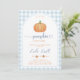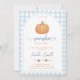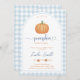 Fêtez l'arrivée de votre petit citrouille avec notre adorable invitation de Baby shower! Ce Modèle de Baby shower d'automne éditable présente un design En vichy bleu charmant, parfait pour toute célébration d'automne.