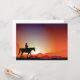 Ce dessin est un cow-boy à cheval. Le cow-boy sur le cheval se dirige à travers le pays au coucher du soleil. Ce cow-boy à cheval a l'air très bien sur ces Invitations