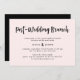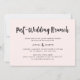 Cette invitation au brunch post-mariage fraîche et moderne présente un script manuscrit branché pour un sur un arrière - plan rose vif chic avec un dos riche et noir.