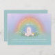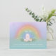 Illustration originale d'une mère ou d'un père et d'un bébé lapin dans un pré de fleurs avec un oiseau jaune et un arc-en-ciel derrière. Customisez le texte pour votre premier anniversaire ou tout âge ou baby shower; baby shower modèle également disponible dans ma boutique