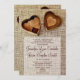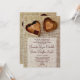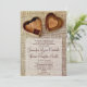 Ce faire-part de mariage rustique est parfait pour tous les mariages occidentaux du pays. Il présente un style rustique de bracelet imprimé de chaque côté de l'invitation avec une boîte en forme de coeur tenant de petits coeurs en bois. Le fond de l'invitation a le même terroir rustique et le même design de coeur avec le mot "Amour" dans le script.