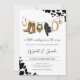 COWBOY COW (NOIR) - Cette adorable invitation de baby shower de Boy Cowboy, Rodeo Cowprint, South Western est entièrement modifiable, peut être imprimée et envoyée par la poste ou l'évènement d'anniversaire peut être partagé par e-mail et les médias sociaux ! Cette Invitation Baby shower Cowboy présente une paire de Casquette Cowboy Boots & Cowboy, Lasso, et un bandana vert accroché sur une ligne, entouré d'empreintes noires. Il y a également un cowprint noir à l'arrière. Ce Rodéo Wild West, Baby shower Invitation est sûr de compléter n'importe quel baby shower à thème occidental, révélation de genre, ou autre événement à thème cowboy! En utilisant le logiciel Zazzle facile à utiliser (pas de téléchargement nécessaire) directement dans votre navigateur, vous achetez et personnalisez tout simplement au même endroit. C'est aussi facile que ça !