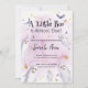 Un petit Boo est presque attendu ! Thème d'Halloween pastel mignon et violet pour invitation à la douche bébé garçon & fille. Le design moderne présente un arrière - plan d'aquarelle super mignon avec de petits fantômes, des chauves-souris, des feuilles et des illustrations citrouilles. Parfait pour un petit garçon et une petite fille en chemin