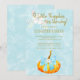 Automne automne bébé garçon douche aquarelle invitation avec un citrouille orange avec un arc turquoise bleu, un bouquet de fleurs blanches et un script de typographie or chic sur un arrière - plan bleu pâle lavé peint.