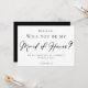Simplement chic et élégant, notre collection minimaliste de mariage d'hiver comprend une typographie cursive élégante pour votre événement moderne. Envoyez cette carte Will You Be My Maid of Honor à votre meilleur ami. Une carte officielle de proposition de parti nuptial.