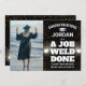 Partagez la joie d'un diplôme d'une école de soudage et de la famille et des amis invitations à célébrer avec une photo personnalisée "Un travail fait" invitations à la fête. L'image et toutes les formulations sont simples à customiser ou à supprimer, y compris les citations drôles. (CONSEIL EN MATIÈRE DE PLACEMENT D'IMAGE : Une façon simple de centrer une photo exactement comment vous voulez est de la rogner avant de la télécharger sur le site Zazzle.) Ce modèle est formaté comme un invitation de fête et une carte de faire-part de graduation, il inclut donc le nom de la diplômée, l'année de classe et l'école. Il peut être facilement customisé avec tous les détails de votre choix, tels que le nom des parents, les distinctions spéciales, la certification / titre de diplôme, la citation inspirante préférée, les plans futurs du diplômé ou nouvelle adresse. Le design noir et blanc présente une torche de soudage avec étincelles, un panneau de mortier en acier inoxydable, une typographie moderne et audacieuse, et une photo de votre choix. Veuillez noter que le capuchon de graduation en argent est imprimé en couleur et non en papier métallique. L'élégance du design fait un ajout amusant et unique à la célébration de graduation d'un soudeur. Félicitations au diplômé !