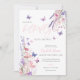 Cette jolie et élégante invitation de baby shower présente des fleurs sauvages et des papillons et peut être personnalisée avec toutes vos informations de célébration spéciales, avec votre code QR de liste de naissance et les détails de l'événement au verso. Conçue par Thisisnotme©