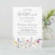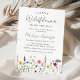 Célébrez la mère à être avec notre invitation enchanteresse Un petit baby shower Fleur sauvage. Le design comprend l'expression "Un petit Fleur sauvage est sur le chemin" en écriture manuscrite en noir et en écriture serif. Un beau pré de fleurs sauvages d'aquarelle et de feuillage s'étend au fond du décor dans des tons vifs de rose, jaune, violet, bleu et vert contrastant avec un arrière - plan blanc. Les élégantes invitations fleurs sauvages à la douche bébé sont parfaites pour les baby showers de printemps et d'été. Conçu pour coordonner avec notre collection Elegant Fleur sauvage Meadow baby shower.