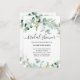 Cette invitation branchée à la douche nuptiale présente une élégante verdure d'eucalyptus aquarelle, avec beaucoup de feuillage, feuilles verts et branches. Elles décorent un arrière - plan blanc simple avec une typographie de script moderne. Le dos de la carte a une tache pour un code QR scannable afin que les invités peuvent facilement rsvp. La meilleure façon pour les amis et la famille invitations de célébrer la future mariée devant son mariage !